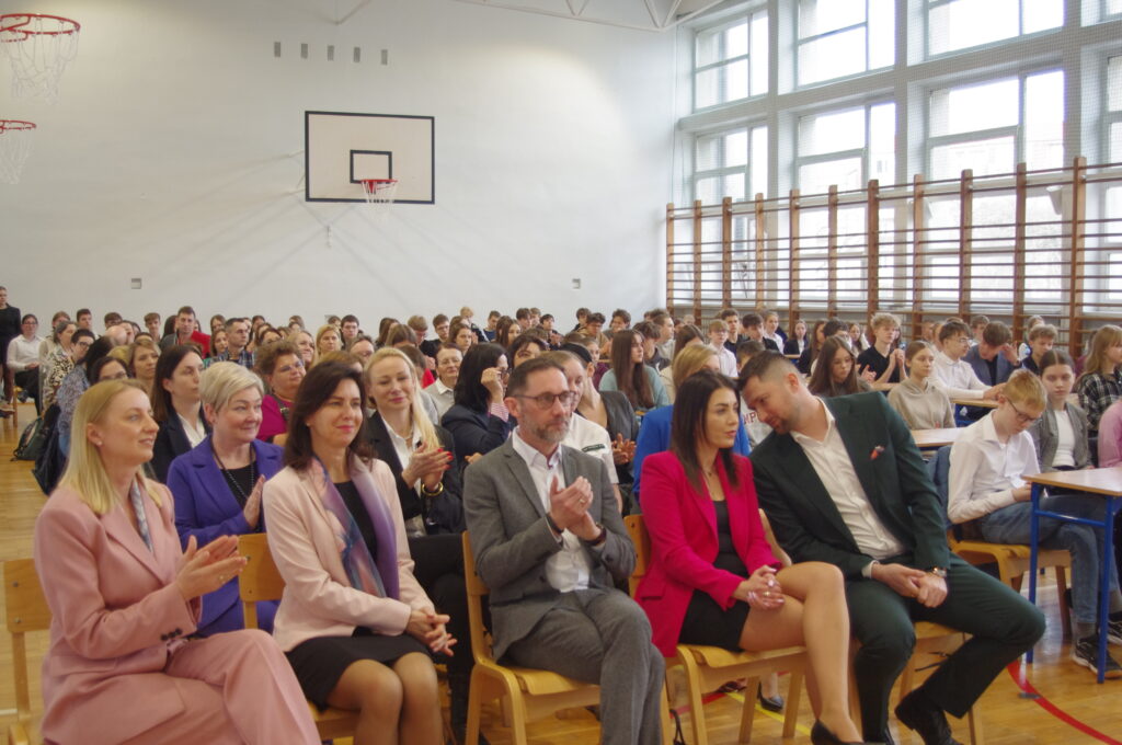 W wydarzeniu uczestniczyli: Wielkopolski Wicekurator Oświaty Wojciech Szulc, Dyrektor Kuratorium Oświaty Delegatury w Kaliszu Anna Piotrowska, Wicestarosta Powiatu Kaliskiego Paweł Kaleta, Dyrektor Wydziału Ochrony Środowiska, Rolnictwa i Leśnictwa Starostwa Powiatowego w Kaliszu Natalia Pleśnierowicz, Dyrektor Oddziału w Kaliszu Banku Spółdzielczego Ziemi Kaliskiej Olga Włosik, przedstawicielka Lasów Państwowych Nadleśnictwa Kalisz Magdalena Lotka, przedstawicielka Ośrodka Doskonalenia Nauczycieli w Kaliszu Magdalena Napruszewska oraz przedstawiciele Rady Rodziców: Paulina Szenfeld-Możdżyńska i Daniela Kąkol.